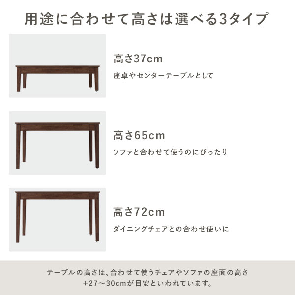 テーブルの高さは、合わせて使うチェアやソファの座面の高さ+27~30cmが目安といわれています。